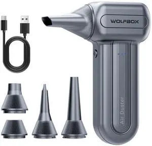 WOLFBOX Compressed Air Duster, 110000RPM Electric Air Duster, 3-Gear Rechargeable Cordless Air Blower for Computer Keyboard, Portable Air Blower with 5 Nozzle, Fast Charge