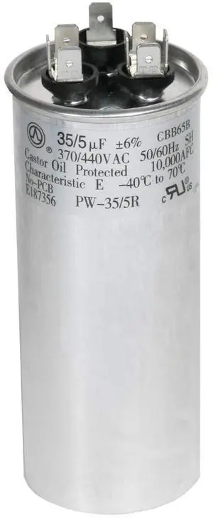35+5 uF 35/5 MFD ±6% 370V/440V CBB65 AC Capacitor, Dual Run Round Capacitor Replacement for HVAC Motor Start, Fan Start, Heat Pump, Condenser Straight Cool