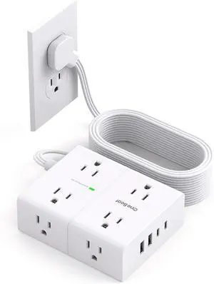 One Beat Extension Cord 15 ft,Surge Protector Power Strip with 8 Widely AC Outlets 3 USB(2 USBC),Flat Plug Power Strip,Desktop Charging Station with Overload Protection for Home,Office,Dorm,ETL Listed