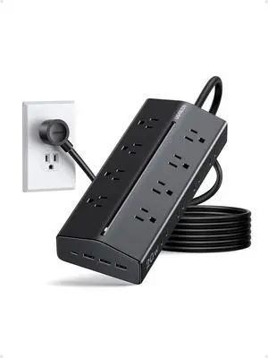 Surge Protector Flat Extension Cord Flat Plug Power Strip, AOFO 8 Widely Spaced Outlets and 6 USB Charger(1 USB C Port), 5 Ft, for Travel, Office, School, Dorm Room Essentials, Black
