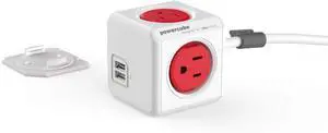 Power Strip, Allocacoc PowerCube |Extended|, 4 Outlets 2 USB Ports, 5 feet Cable, Surge Protection, Mounting Dock, Compact for Travel, Home and Office, Space Saving, ETL Certified