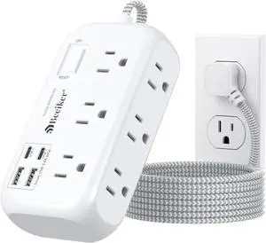 4 USB(2 USB C) Surge Protector Power Strip with Switch- 6 Ft Flat Braided Extension Cord with 6 Widely Outlets, Flat Plug Wall Mount Desk USB Charging Station for Home Office Dorm Room Travel 1625W