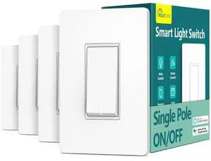 Smart Light Switch Single Pole Works with Alexa, Google Home and SmartThings, 2.4GHz WiFi Timer Smart Switch, Neutral Wire Required, No Hub Required, FCC Listed, 4 Pack
