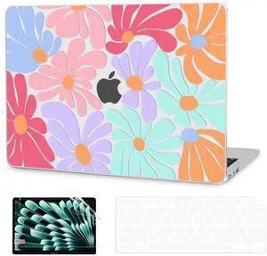 G JGOO Compatible with MacBook Air 13 inch Case 2025 2024 2023 2022 M4 A3240 M3 A3113 M2 A2681, Clear Hard Shell for MacBook Air 13.6 inch Case + Keyboard Cover + Screen Protector, Colorful Flower