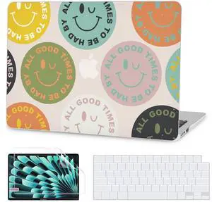 G JGOO Compatible with MacBook Air 13 inch Case 2025 2024 2023 2022 M4 A3240 M3 A3113 M2 A2681, Plastic Hard Shell for MacBook Air 13.6 inch Case + Keyboard Cover + Screen Protector, Colorful Face