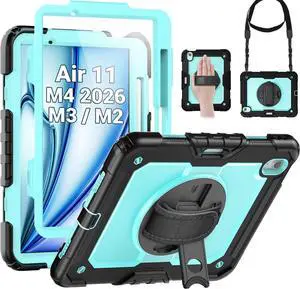 BONAEVER Case for iPad Air 11 inch 8th 7th 6th Generation M4 M3 M2 2026 2025 2024, Heavy Duty Shockproof Cover with Screen Protector, Stand and Hand/Shoulder Strap Light Blue