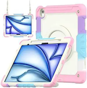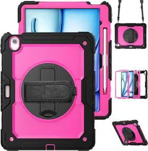 Case for iPad Air 13 inch M4 2026 M3 2025 M2 2024 and iPad Pro 12.9 2022 - 2018 6th/5th/4th/3rd Gen with Built-in Screen Protector, 360° Rotating Stand, Adjustable Shoulder Strap, Pencil Holder