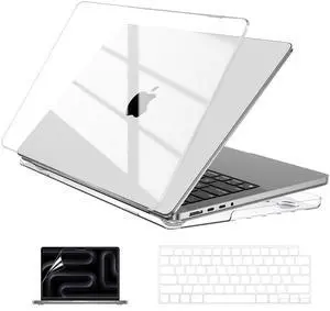 Macaset Compatible for MacBook Pro 14 inch Case M5 M4 M3 M2 M1 Pro/Max 2025-2021 [100% Crystal Clear] [Full-Coverage Protection] Hard Shell Laptop Cover - Clear