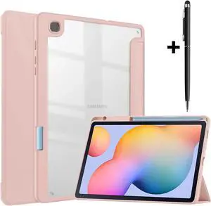 Slim Case for Samsung Galaxy Tab S6 Lite 10.4 Inch 2022 2020 Model SM-P610/P613/P615/P619 with S Pen Holder, Stylus Pen, Shockproof Cover with Clear Transparent Back Shell Rose Gold