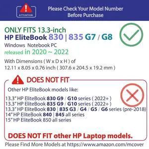 mCover Case Compatible ONLY for 2020~2022 13.3" HP EliteBook 830 G7 / G8 (Intel CPU) ^^ EliteBook 835 G7 / G8 (AMD CPU) Series Windows Laptop (NOT Fitting Any Other HP Models) - Black