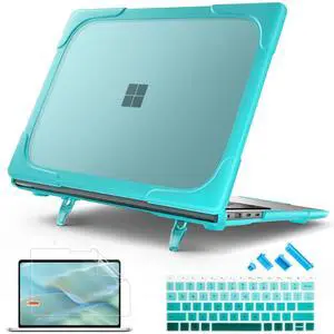 Lepeoac Heavy Duty Case for Microsoft Surface Laptop 13.8 inch, 2024 Windows 11 Copilot+ PC, 7th Edition Touchscreen Display with Fold Kickstand, Keyboard Cover & Screen Protector, Light Blue