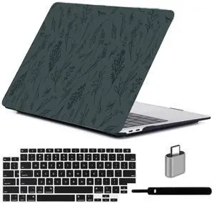 LanBaiLan Compatible for New MacBook Air 13 inch 2020 2019 2018 Release A2337 M1 A2179 A1932 Retina Display with Touch ID Laptop Plastic Hard Shell Protective Case & Keyboard Cover, Dark Green Grass