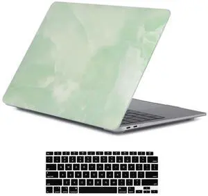 LanBaiLan Compatible for New MacBook Air 13 inch 2020 2019 2018 Release A2337 M1 A2179 A1932 Retina Display with Touch ID, Laptop Plastic Hard Protective Case & Keyboard Cover, Matcha Green Marble