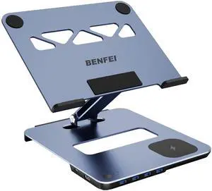 Laptop Stand with USB C 6in1 Docking Station, 15W Magnetic Wireless Charger, USB 3.0 KVM Switch, HDMI 4K@60Hz, 4*USB3.0, 100 PD Compatible with MacBook Pro/Air, iPad Pro, XPS, Thinkpad