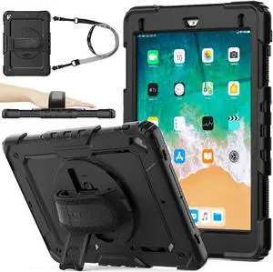 Case for iPad Air 3 2019 / Pro 10.5'' with Screen Protector Pen Holder [360° Rotate Hand Strap/Stand], Drop-Proof Case (Black)