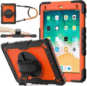 Case for iPad Air 3 2019 / Pro 10.5'' with Screen Protector Pen Holder [360° Rotate Hand Strap/Stand], Drop-Proof Case (Black+Orange)