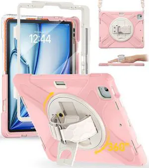 Case for iPad Air 13 Inch 2025(M3)/2024(M2) & iPad Pro 12.9''(2022/2021/2020/2018), Full-Body Protection Screen Protector Pencil Holder 360° Rotating Handle Kicktand Shouler Strap Kids Friendly