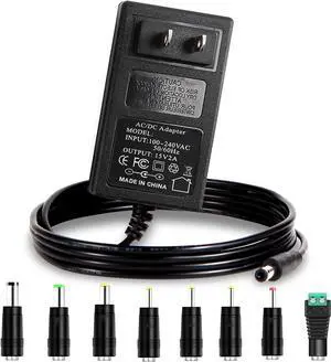15V 2A DC Power Supply 30 Watt Power Adapter AC DC 15V Power Cord 15 Volts 2 Amps Regulated Switching Power with 8 Interchangeable Jacks for 1A 1.2A 1.3A 1.4A 1.5A 1.6A 1.7A 1.8A 1.9A 2A 500mA~2000mA