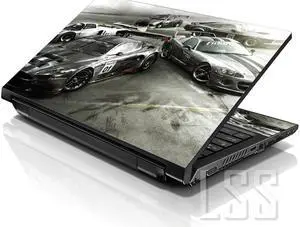 LSS 15 15.6 Inches Laptop Notebook Skin Sticker with 2 Wrist Pads - Reusable Cover Protector Vinyl Sticker Cover Decal Fits 13" - 16" - Racing Cars Pattern