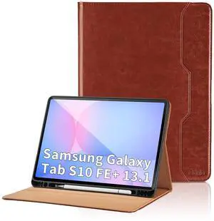 Case for Samsung Galaxy Tab S10 FE Plus 13.1-Inch 2025 - Model SM-X620/SM-X626B with S Pen Holder and Pocket, PU Leather Business Folio Stand Cover for Galaxy S10 FE+, Brown