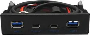 USB 3.2 10Gbps USB Front Panel Hub 3.5 inch Floppy Bay 2x Type-C and 2x USB-A 4 Ports Computer Case Expansion Adapter,USB 3.2 Motherboard Header 20Pin Key-A Type-E to 4 USB Splitter-2FT Cable