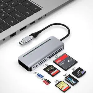 7-in-2 Memory Stick Pro Duo Card Reader USB-A & USB-C Multi-Card Reader for SD/TF/CF/MS/XD Memory Cards 5Gbps High-Speed Transfer SD Card Reader for iPhone 15/16/17 MacBook iPad Android Camera