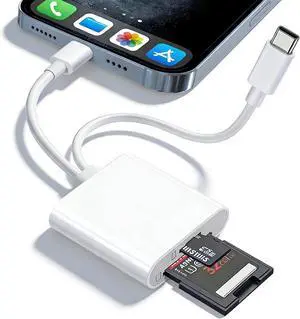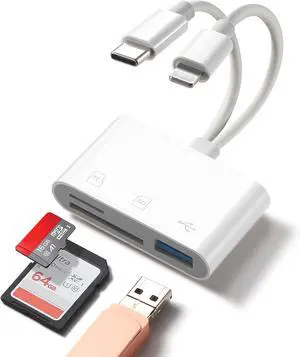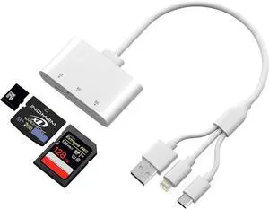 SD Card Reader for iPhone/iPad and Android Lightning+USB C Dual Port TF Card Adapter SD/TF/USB-A 3-Slot Memory Card Reader Digital Camera SD Card Adapter