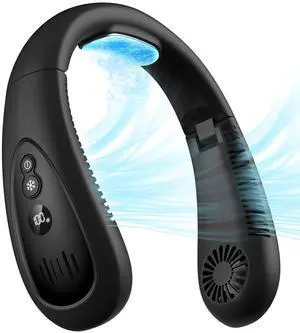 Personal Cooling Portable Neck Fans - USB Rechargeable,360 Free Rotation & Lower Noise Bladeless Battery Operated Design with 3 Speeds Duration 48 hrs, Small Neck Air Conditioner(Black)