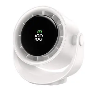 Desk Fans for Bedroom, Strong Airflow Turbo Quiet Small USB Fan, 17hrs Running, 360° Rotate & 5 Speeds, 4000mAh Battery Operated Portable Fan with LED Display for Home Office Desktop-White