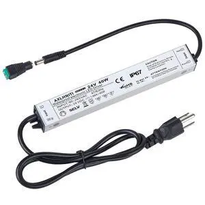 LED Power Supply 40W, Waterproof IP67, 90V-265V AC to 24V DC, 3-Prong Plug & 3-Ft Cable for LED Strip Lights
