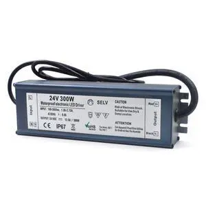 LED Driver 24V 300W Waterproof IP67 Power Supply Transformer, 100-265V AC to 24V DC Low Voltage Output, LED Transformer with 3-Prong Plug Cable for LED Light, Computer Project, Outdoor Light