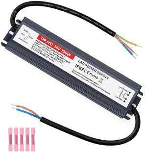 24V Power Supply 100W LED Driver Waterproof IP67, 110V-250V AC to 24V DC 4.16A Low Voltage Transformer Adapter for Indoor and Outdoor LED Light, Computer Project Use