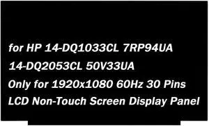 Replacement for HP 14-DQ1033CL 7RP94UA 14-DQ2053CL 50V33UA 14-DQ4035CL 14-DQ2055WM 14-DQ1043CL 1V782UA 14-DQ1043D FHD 1920x1080 60HZ 14" LCD Non-Touch Screen Display Panel (Olny for Non-Touch Screen)