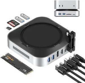 USB-C Docking Station Chassis for Mac mini M4 with M.2 NVMe SSD Enclosure, USB3.2 10Gbps High-Speed Transfer, USB 2.0 Connection for Mouse and Keyboard, Supports SD/Micro SD 3.0, Up to 8TB