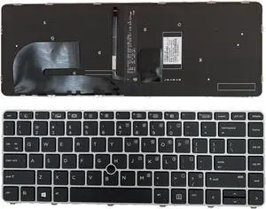New Backlit Keyboard for HP EliteBook 840 G3 840 G4 745 G3 745 G4 848 G3, P/N 901042-001 903008-001 836308-001 6037B0126901 Silver Frame US Layout Laptop Keyboard (not with Pointer)