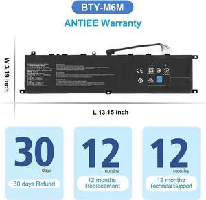 BTY-M6M Laptop Battery for MSI GS66 Stealth 10SE 10SF 11UE 11UH GE66 Raider 10UG 11UG GE76 for Raider 11UE 11UG GE76 for Dragon Tiamat 11UH WS66 10TM 11UMT 11UKT for Creator 15 15.2V/95Wh/6250mAh