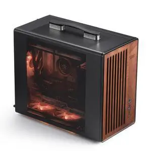 WD200(2025) Portable Micro-ATX PC Case with Handle, 1 ARGB PWM Fans, with Walnut Wood, Type-C, Support 240 AIO, H165mm Cooler, Simple Compact Desktop (Black)