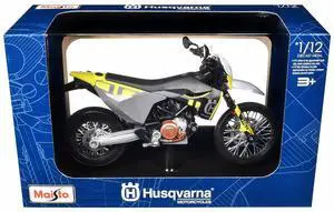 2023 Husqvarna 701 Supermoto Motorcycle Matt Black and Gray with Yellow & White Accents 1/12 Diecast Motorcycle Model by Maisto