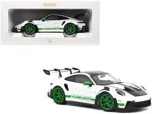 2022 Porsche 911 GT3 RS Weissach Pack White with Green Stripes And Carbon Hood and Top 1/18 Diecast Model Car by Norev