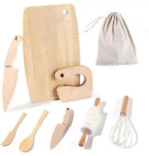 Kids Knife Set for Real Cooking, 8 PCs Kids Cooking Sets for Little Chef, Nature Wood Utensil