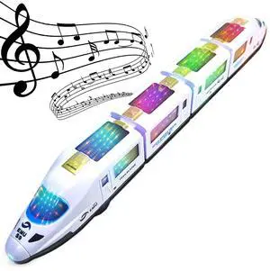 Toy Train Electric Bullet Train Battery Operated Action Locomotive Car High Speed Vehicle with 3D Lightning and Music Gift for Kids, Goes Around and Changes Directions on Contact, 20.5'' Long