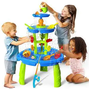 CozyBomB Water Table for Toddlers 3-5 | Outdoor Toys Water Play Table, Magnetic Fishing Toy Game, Summer Splash Pond Showers Sand Activity, Sensory Party Birthday Gift Kids Ages 4-8 9-12