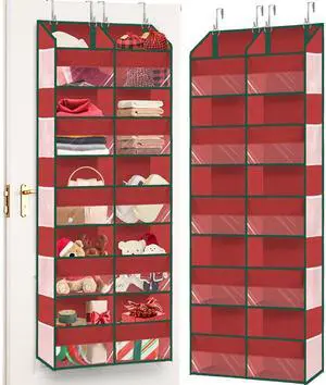 Christmas Over The Door Organizer 5 Tiers, Extra Large Behind Door Storage of 10 Compartments, 80 lbs Weight Capacity Hanging Storage Organizer with Clear Window Kids Toys, Shoes, Diapers, Red