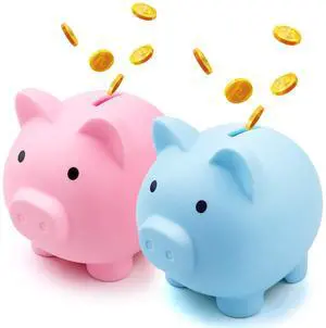 2 Pack Plastic Cute Pig Money Bank,Unbreakable Piggy Saving Money Box Coin Bank for Boys Girls Kids Adults Home Decoration(Blue and Pink)