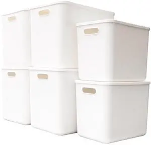 Yishyfier Plastic Storage Baskets Bins Boxes With Lids,Organizing Container White Storage Organizer Bins For Shelves Drawers Desktop Playroom Classroom Office,6-Pack(4XL+2L)