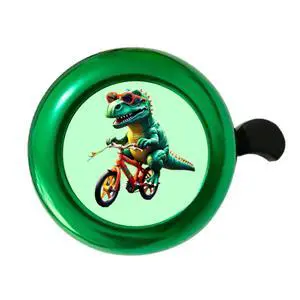 Cool Dinosaur - Loud Crisp Clear Sound Metal Bike Bicycle Bell for Kids and Styles (Green Biking Dinosaur)