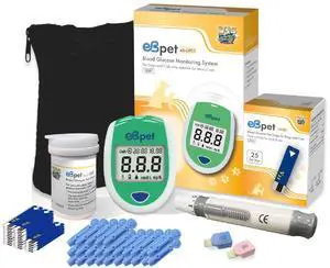 eBmonitor eBpet Blood Glucose Monitor System - Dogs and Cats Glucose Monitoring Kit 25 Blood Glucose Test Strips Lancing Device, Battery, 26 Gauge Sterile Lancets,