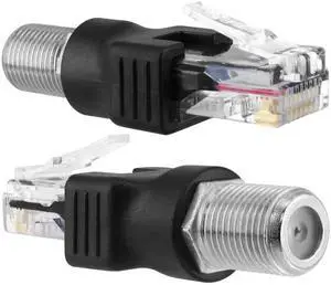 RF to RJ45 Converter Adapter, 2 Pack F Female to RJ45 Male Ethernet Adapter Coaxial Coupler Coax Straight Connector