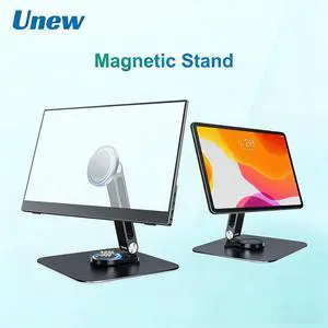 Unew Black Magnetic Metal Stand 360° Rotatable Holder for Portable Monitor, iPad & iPhone Displays,  Stable 3KG Bracket