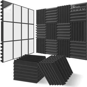 JBER 24Pack Sound Proof Foam Panels, 2" X 12" X 12" Self-Adhesive Acoustic Wall Paddings for Home Office Studios (Black)